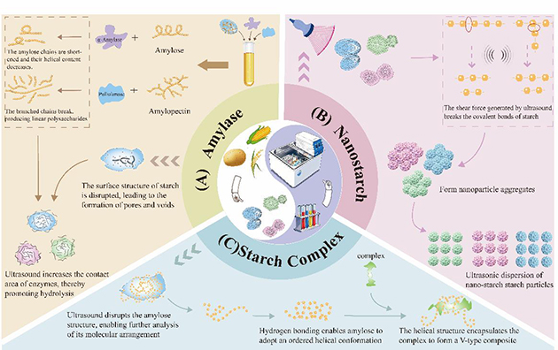 中国科学院分院成立于1954年,是中国科学院正在全国9个分院之一,做为中国科学院的派出机构,担任联系正在甘肃和青海的院属科研单元。包罗:近代物理研究所、化学物理研究所、西北生态资本研究院、青海盐湖研究所以及西北高原生物研究所。建院近70年来,分院正在中国科学院和甘肃、青海省委、取得了一多量严沉科研立异,为我国科技事业成长做出了应有贡献。次要包。。。超声波辅帮淀粉改性是一种新兴的绿色物理方式,它操纵空化效应和机械剪切感化淀粉的结晶区域,改变颗粒形态,添加比概况积,从而无效提拔淀粉的消融性、亲水性和功能特征。比拟保守的化学和酶法改性体例,超声波改性避免了化学试剂的利用及生物催化剂的残留,更平安且环保。近日,中国科学院化学物理研究所天然药物取化学丈量研究核心食物化学取平安检测团队颁发了关于淀粉回生方面的综述文章,系统总结了超声波辅帮淀粉改性范畴的最新研究进展,为绿色、高效的淀粉功能化改性手艺供给了主要参考。该论文深切切磋了超声波参数优化、布局-机能关系解析及协同改性策略,展示了超声波手艺正在淀粉改性范畴的广漠前景。本综述概述了超声波功率、时间、温度及淀粉浓度对淀粉布局取理化性质的影响。总结发觉,适度提崇高高贵声波功率可加强机械效应,推进淀粉颗粒概况和内部沉组,但功率过高易导致局部过热和概况凝胶化,从而降低改性效率。通过优化处置时间和淀粉浓度,可实现颗粒尺寸、结晶度及功能特征的调控。超声处置可淀粉的结晶布局,导致链断裂取沉排,推进无定形化,并显著改变其糊化特征、凝胶性及消化性。改性后的淀粉概况粗拙多孔,