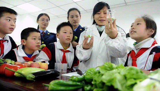 3月14日,安徽省合肥市包河区屯溪小学阳光校区的学生走进包河区食物平安检测室,和工做人员一路脱手对蔬菜样本进行食物平安检测。通过领会食物平安检测法式,孩子们对食物平安的主要性有了更深切的认识。摄影/刘军喜!